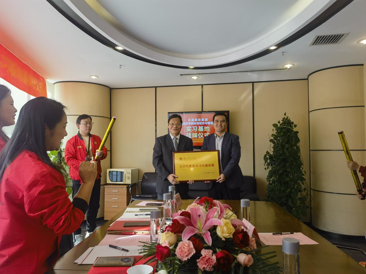 最後,雙方代表簽訂校(xiào)企合作(zuò)協議(yì),孫院長代表學院為(wèi) “湖北經濟學院大學生(shēn樹對g)就(jiù)業實習實訓基地”授牌。