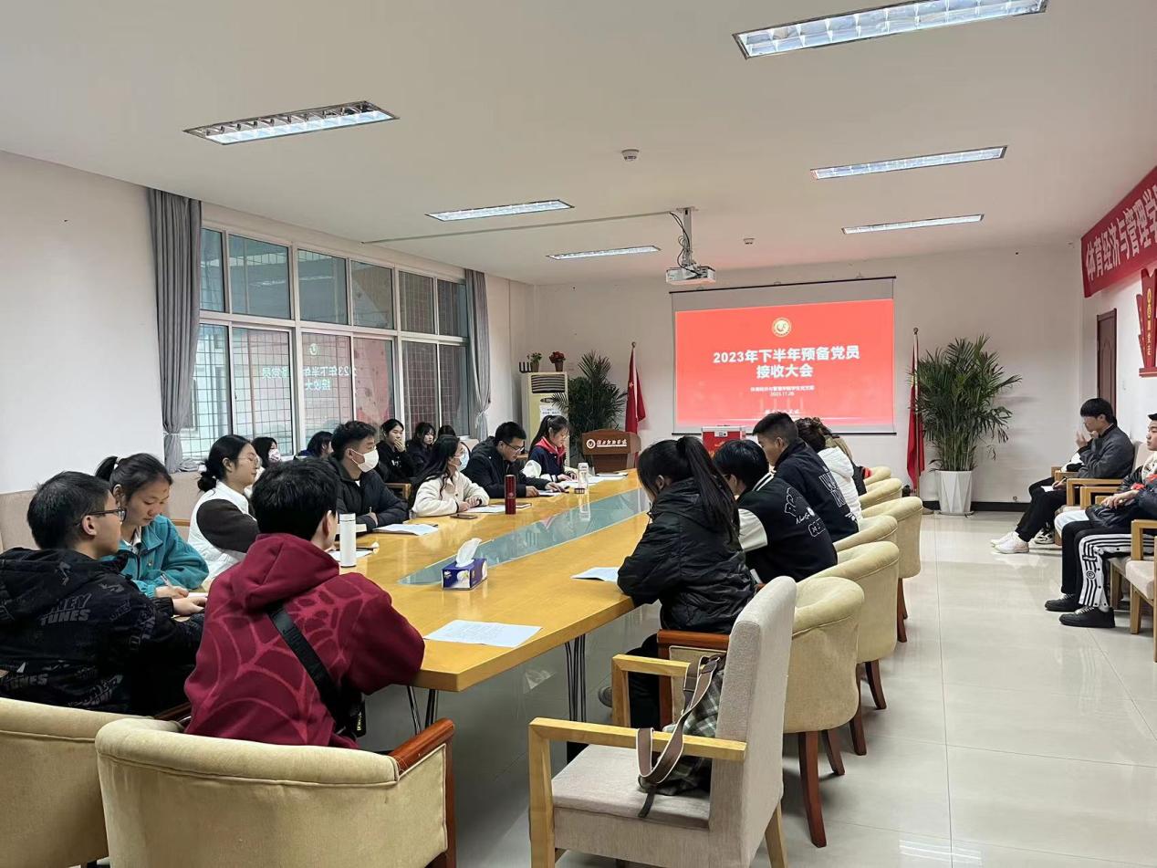 &n秒照bsp;2023年11月(yuè)(yuè)28日下(xià)午6舊讀點,我院學生(shēng)黨支部在體(tǐ)育館二樓會議(yì)室召開2023年下(xià)半年預備黨員(yuán)接收大會,討(但身tǎo)論接收預備黨員(yuán)問題。學生(shēn林秒g)黨支部全體(tǐ)黨員(yuán)參加大會,會議(yì)由學生(shēng你歌)黨支部書記徐盛富主持。
