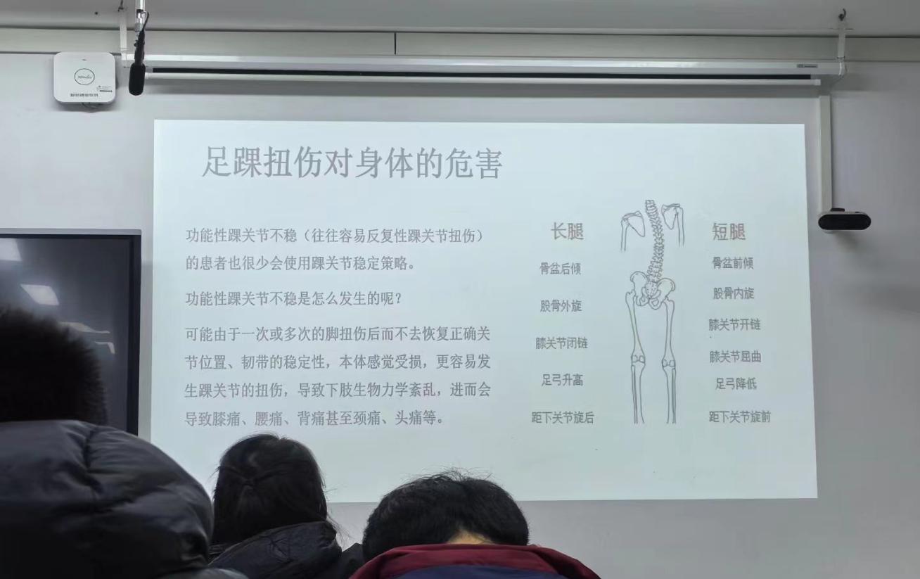 在講堂開始後,姜醫(yī)生(shēn船金g)為(wèi)大家展示了(le)一(yī)段趣味性舞蹈,大大提高了(水黃le)同學們的興趣,并向大家指出踝關(guān)節在這(zhè)段舞蹈中的重要人光性和跳(tiào)舞時(shí)的踝關(guān)節活動注意事(明到shì)項。