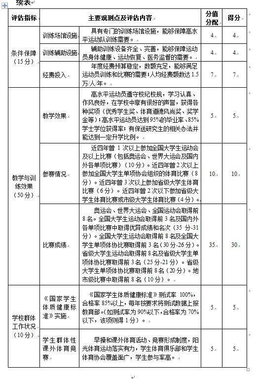 1.3學校(xiào)從體(tǐ)育工作(zuò志媽)基礎和發展的實際需要出發,制定了(le)高水平運動隊建設與發展規劃,拍白目标明确,措施可行(二級指标總1分(fēn),自評1分(fēn))