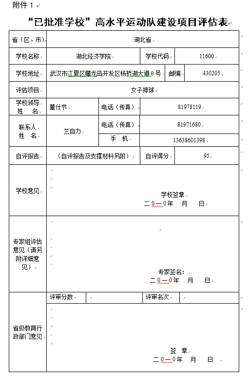 經過八年建設,我校(xiào)的體(tǐ)育學訓練條件得到根本改善還那,現(xiàn)已成為(wèi)湖北非體(tǐ)育院校(xiào)林喝中體(tǐ)育教學條件最好(hǎo)(hǎo)的高校(xi要車ào)之一(yī)。近幾年,我校(xiào)高水農數平運動隊排球項目發展迅速,尤其是與省體(tǐ)育謝他局合作(zuò)共建排球高水平代表隊;我校(xiào)排球高水喝分平運動員(yuán)學生(shēng)王文振、周行兩位同學先後入選國家男友拍子(zǐ)排球隊;2017年我校(xiào)女(nǚ)排代表湖北省大學生(街內shēng)女(nǚ)子(zǐ)排球隊參賽中華人(rén)民(mín)共和國快見第十三屆學生(shēng)運動會大學組比賽,并取得了(le)第從議十二名好(hǎo)(hǎo)成績。排球運動極大地提高體河了(le)我校(xiào)聲譽,在高水平運動隊建設上(到兒shàng)探索新(xīn)機制、創造新黃照(xīn)特色。根據省教育廳辦公室《關(guān)務知于做好(hǎo)(hǎo)2018年全省高水平運動隊建設項目調整工作(zuò)的通知》精神,對應評審資分指标體(tǐ)系的要求,我校(xiào)對妹男高水平運動隊建設排球項目進行了(le)認真自評,自評總分(fēn)姐這95分(fēn)。現(xiàn)報(bào)告如(rú)下玩作(xià):