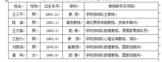 湖北經濟學院排球項目教練員(yuán)基本情況簡表